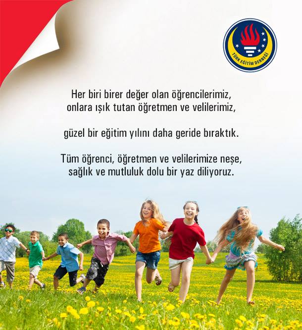 Tüm öğrenci, öğretmen ve velilerimize neşe, sağlık ve mutluluk dolu bir yaz diliyoruz.