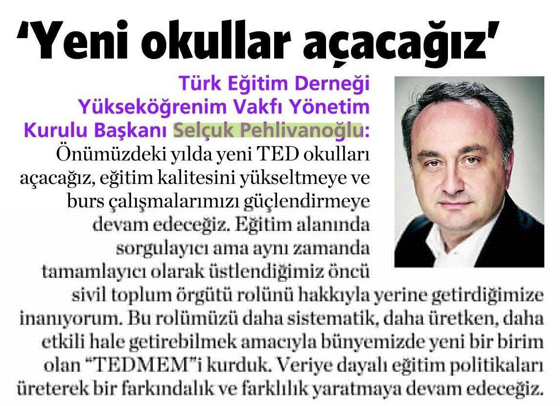 Türk Eğitim Derneği 85. yıl resepsiyonu; TED Genel Başkanı Sn. Selçuk Pehlivanoğlu’nun konuşması